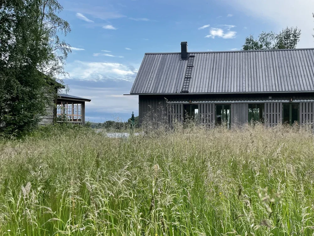 Ett fritidshus mellan äng och sjö och med närhet fjällen.