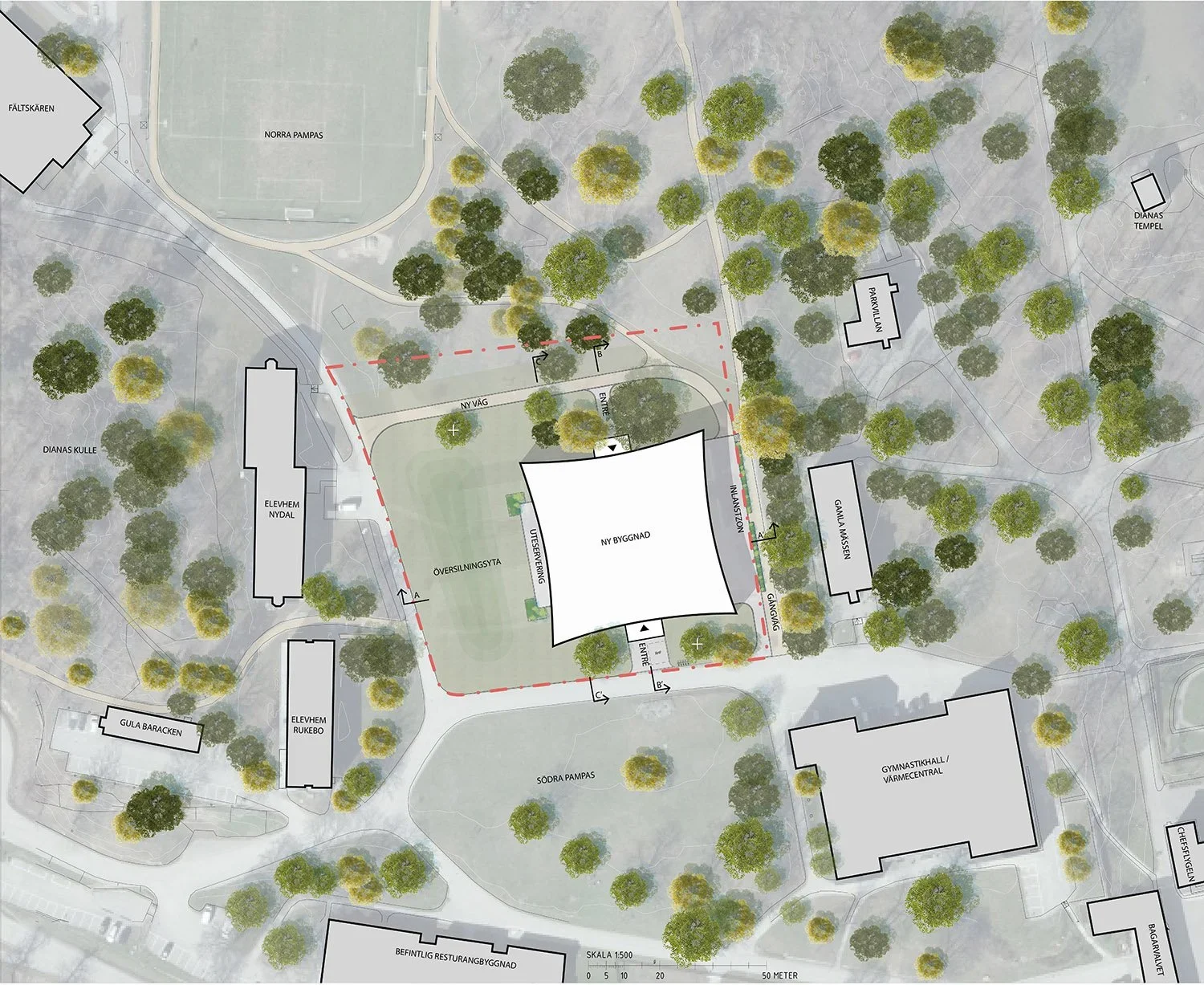 Som en del i att expandera militärhögskolan på Karlbergs slott ska en ny mässbyggnad innehållande bland annat matsal och kontor byggas. Byggnaden har ritats av Tham & Videgård Arkitekter och förvärvades genom en tävlingsvinst. Landskapet är ritat av Arkitema Architects med Per Axelsson som uppdragsansvarig landskapsarkitekt och Fredrik Wennberg som handläggande landskapsarkitekt. Projektet påbörjades 2021 och färdigt förfrågningsunderlag lämnades in i slutet av 2024.